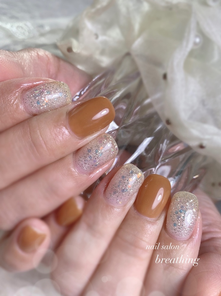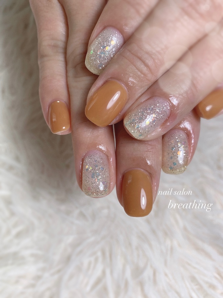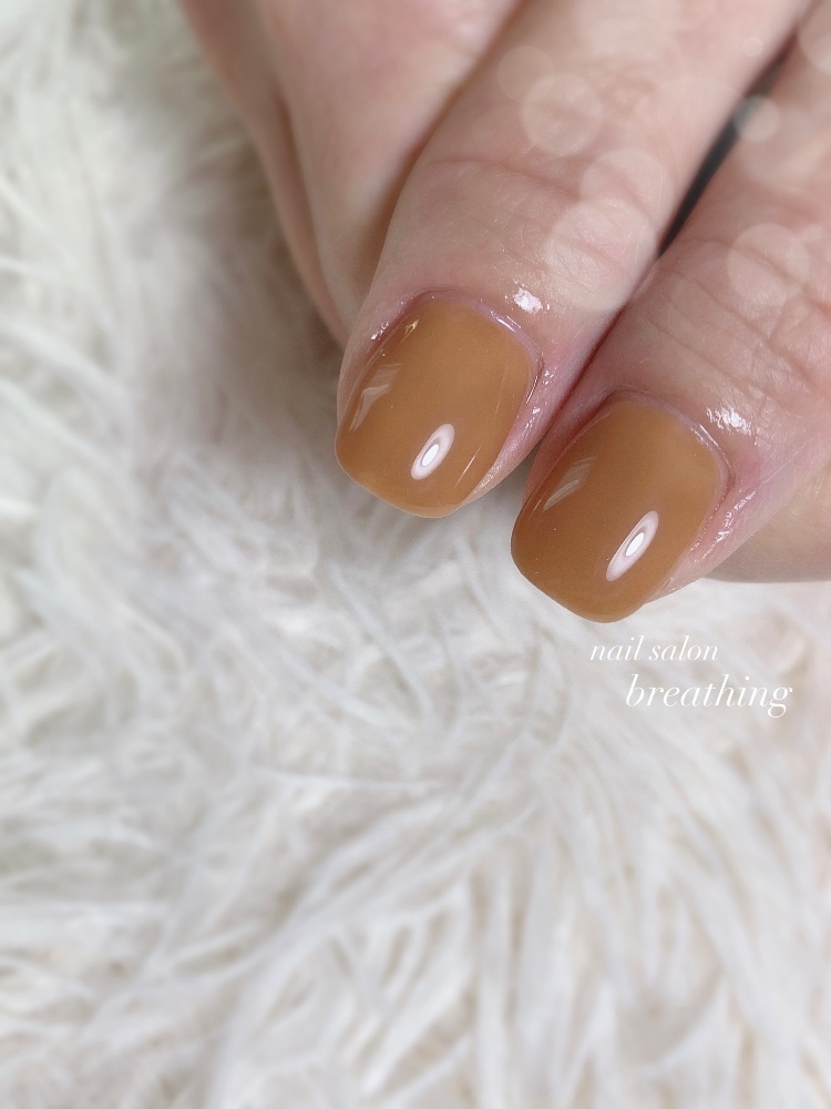キャラメル色のワンカラーネイル🧡🤎