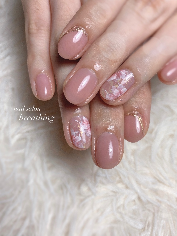 上品ピンクのフラワーネイル